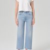 The 90’s Pinch Waist Crop in Radius offers a worn-in take on a classic silhouette with its washed-out medium black finish and subtle vintage detailing. Crafted from heavyweight comfort stretch denim, it combines structure with a soft, flexible feel for lasting wear. The high-rise, straight-leg fit and 27.5″ cropped inseam make it a versatile addition to any wardrobe.