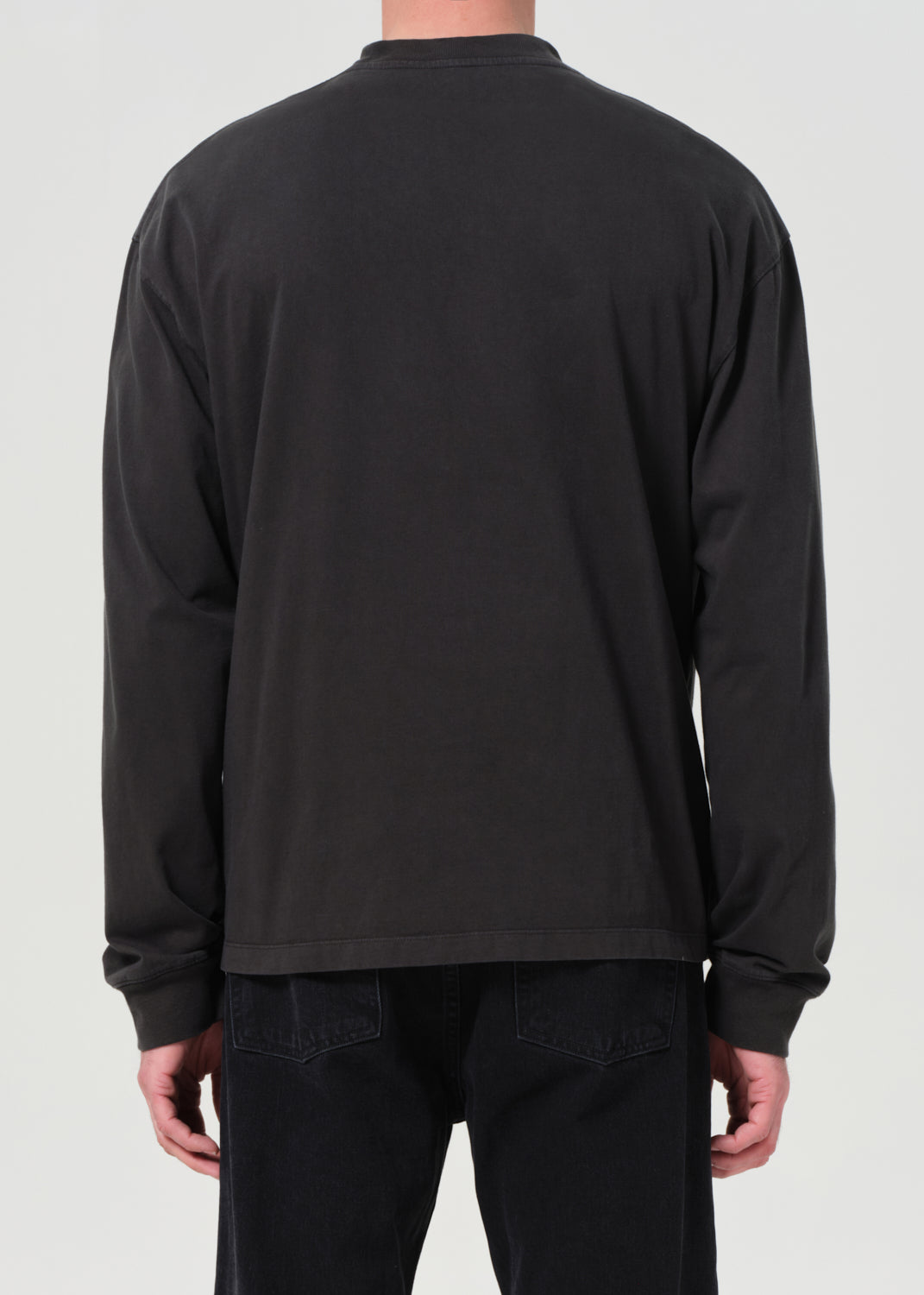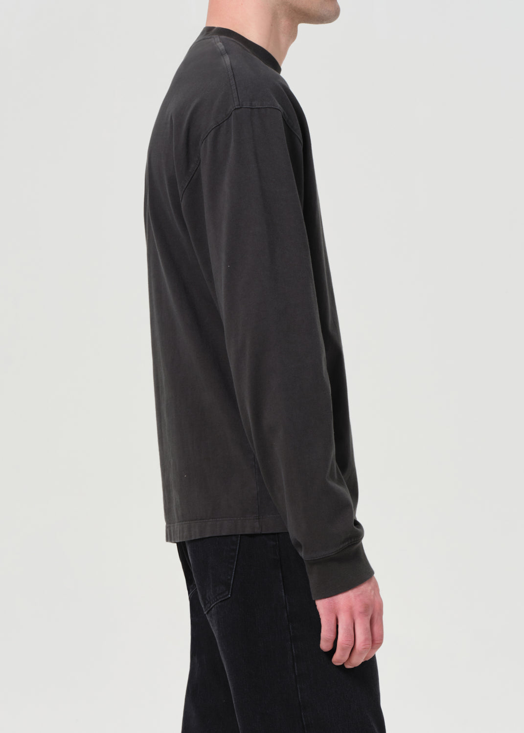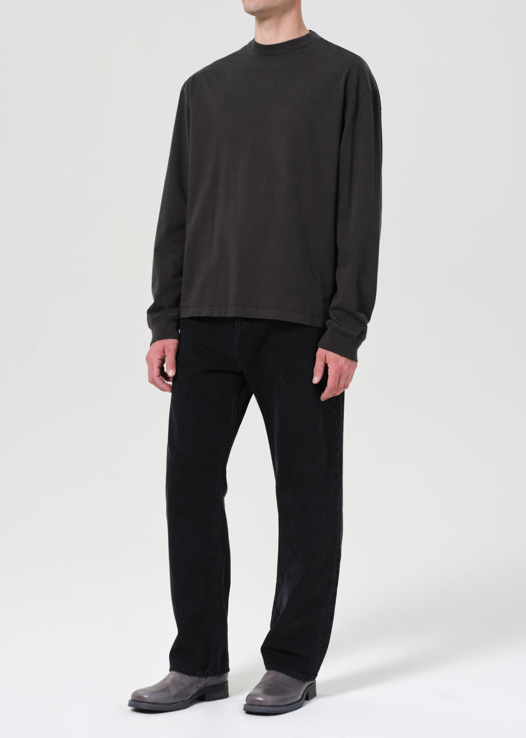 A washed-out dark grey long sleeve tee crafted from lightweight, breathable cotton jersey. True to size with a relaxed fit, ideal for layering or wearing on its own. Made from 100% Cotton.