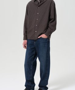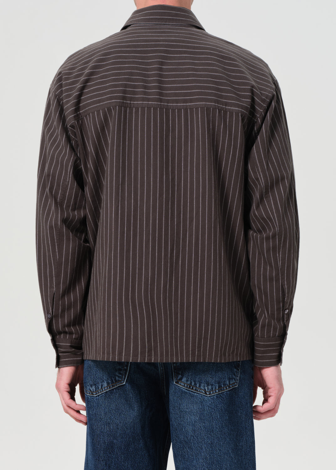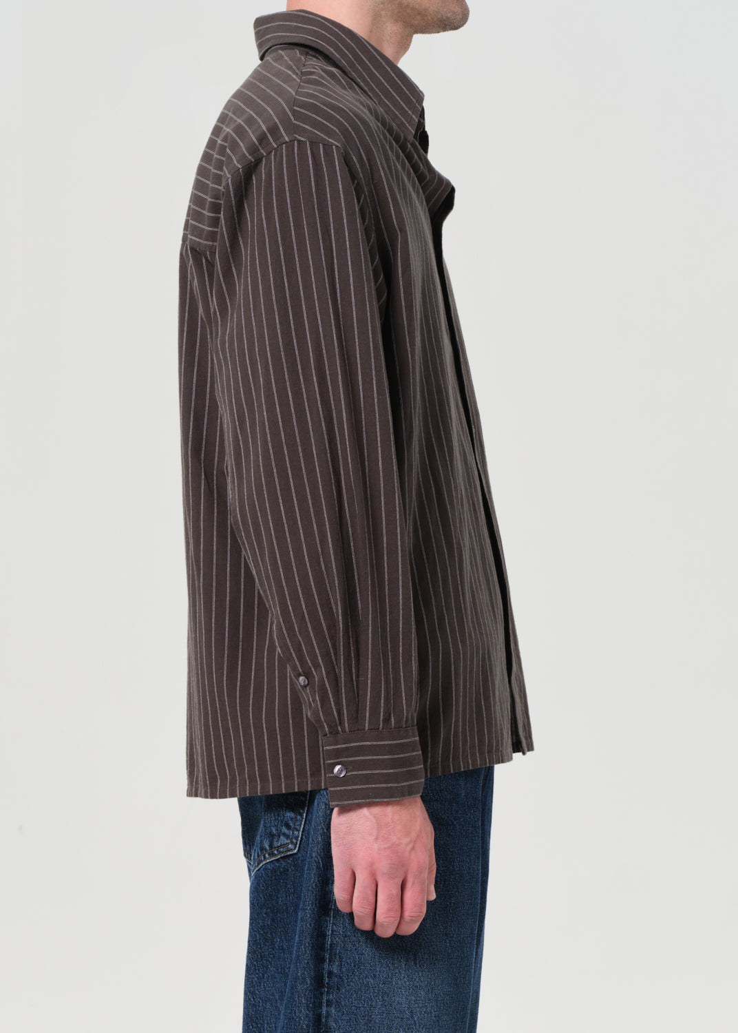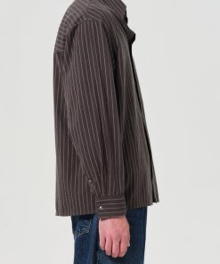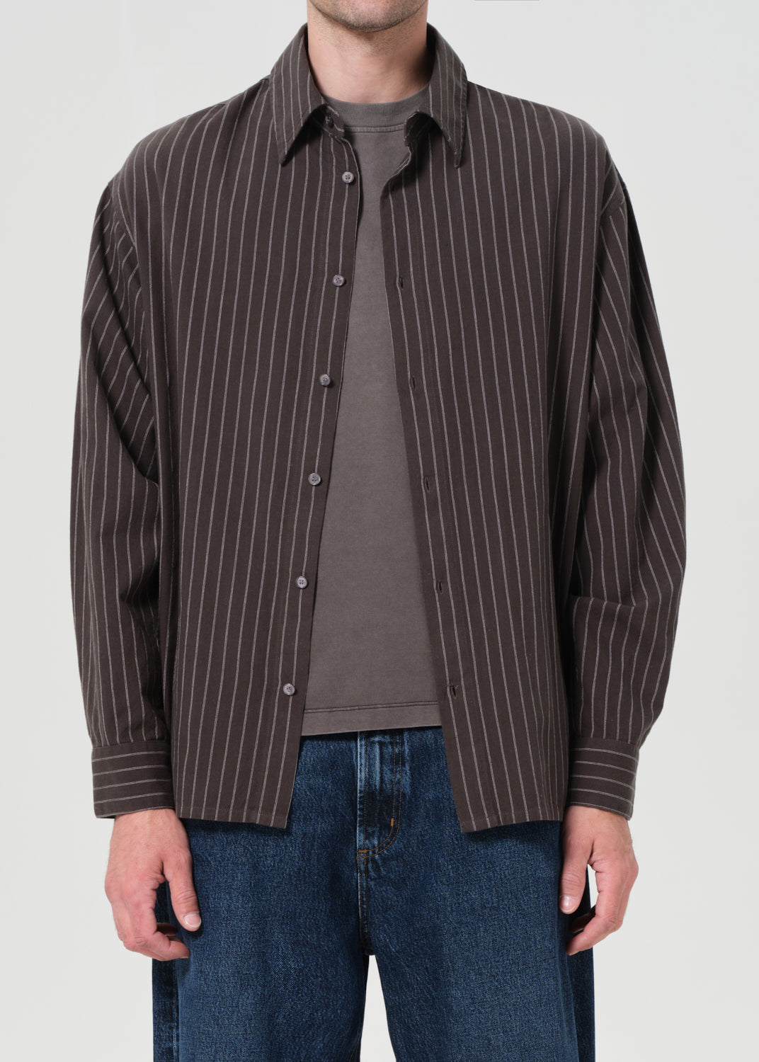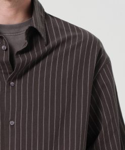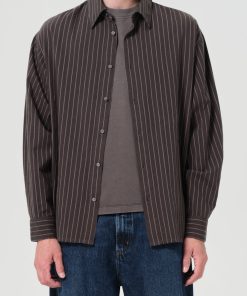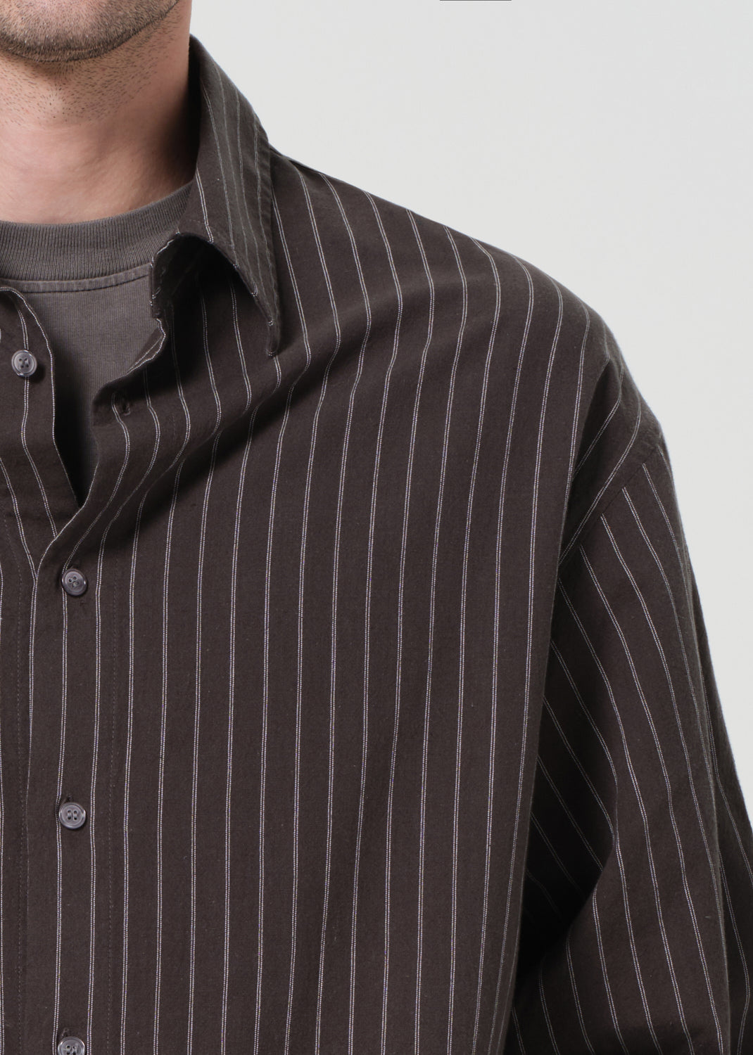 Looks Like: Dark grey two toned striped long sleeve button front collared shirt