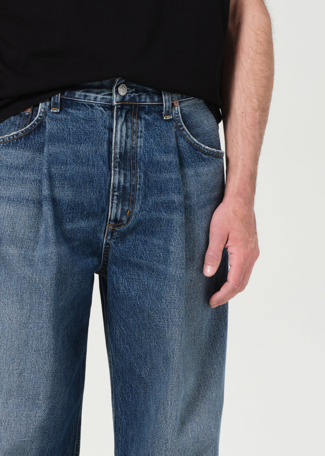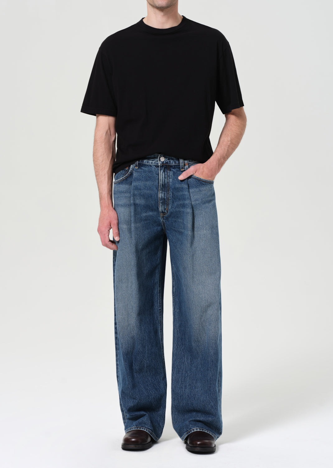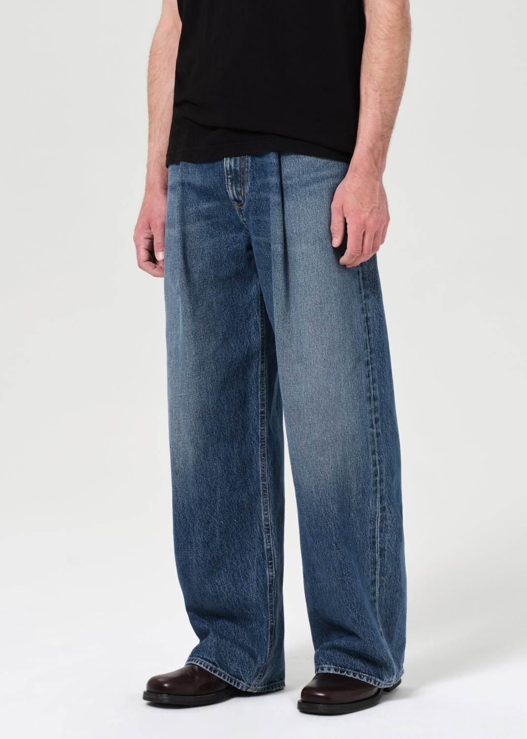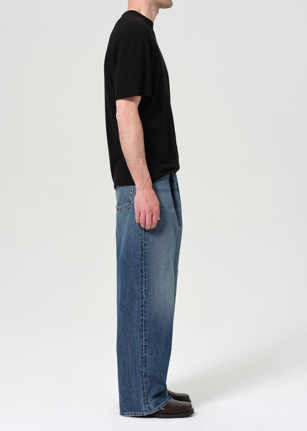 A relaxed silhouette with subtle structure. The Benton features a single front pleat, mid rise, and a wide, easy leg. Crafted from 100% Regenerative Cotton denim for a clean, minimal look with a considered edge.