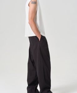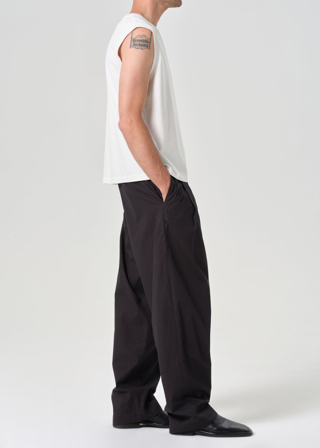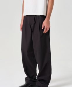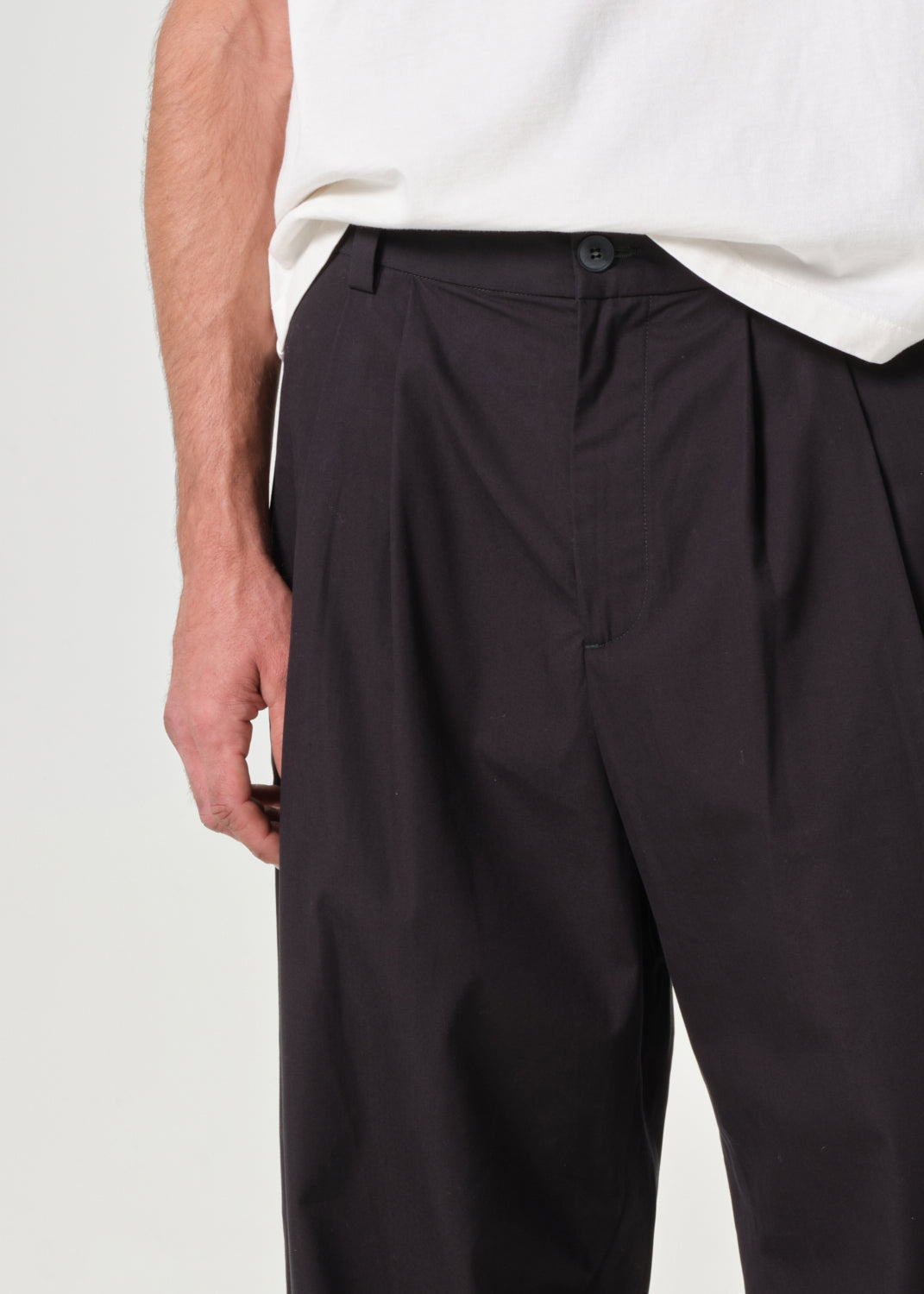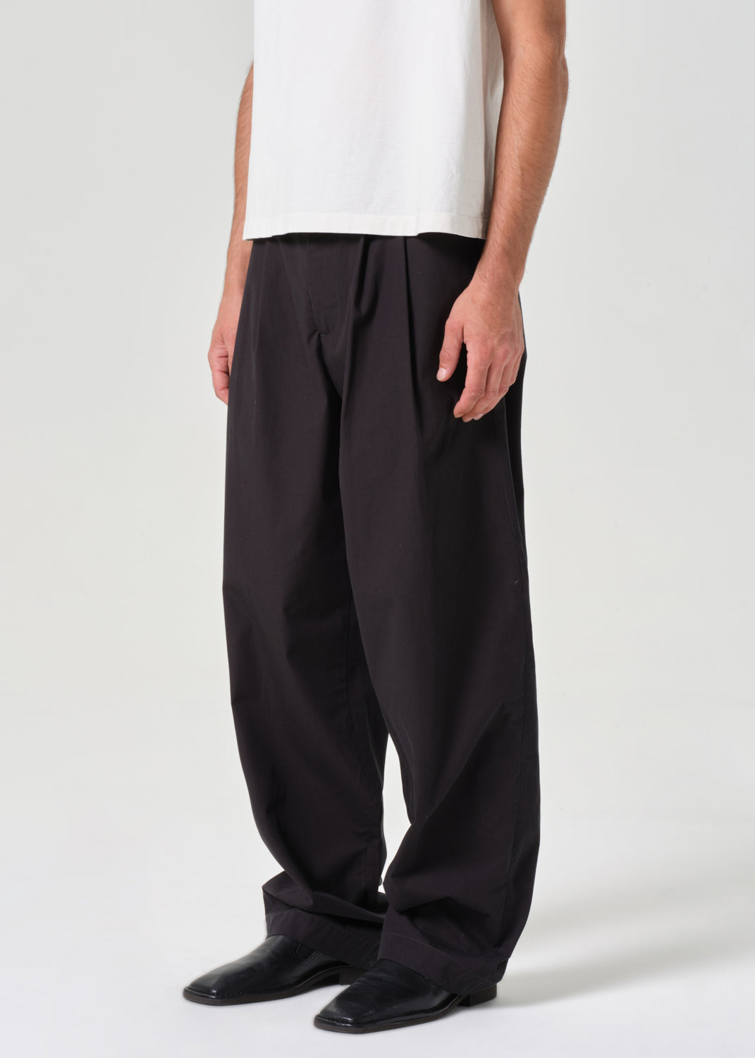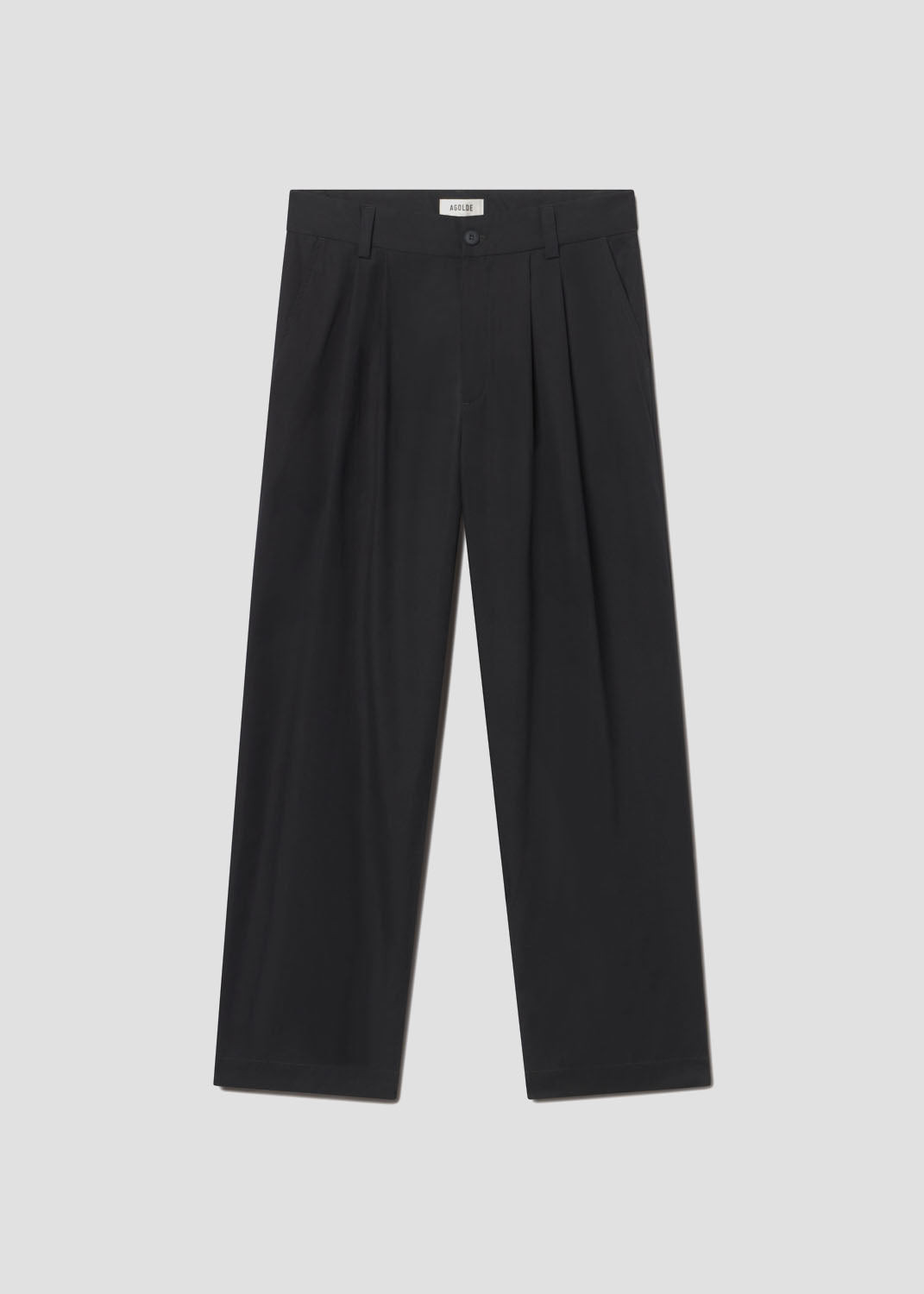 Relaxed straight leg with easy, pleated detailing and a subtle taper.