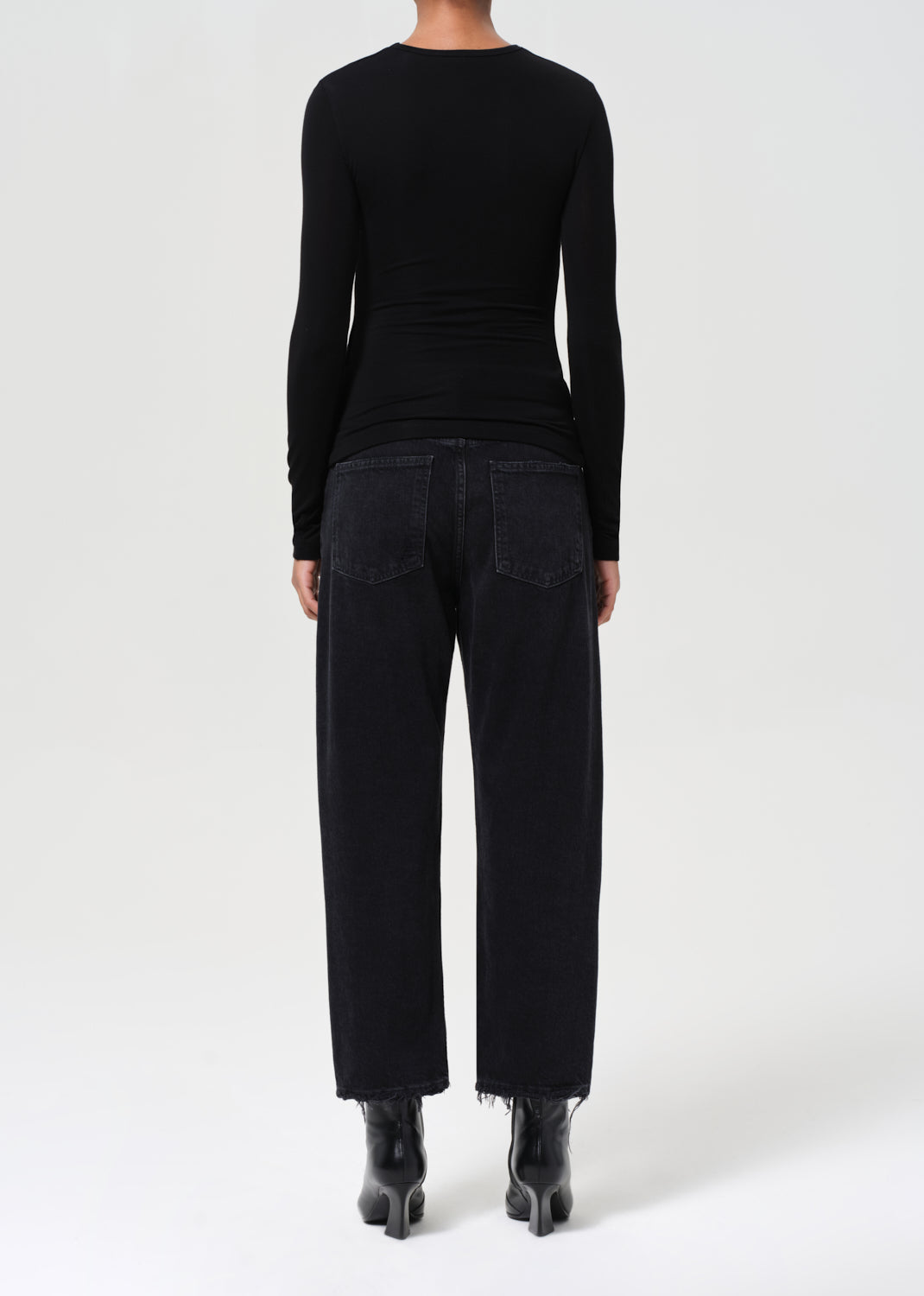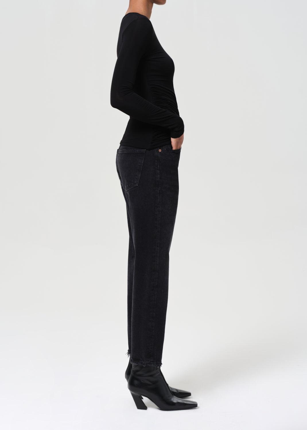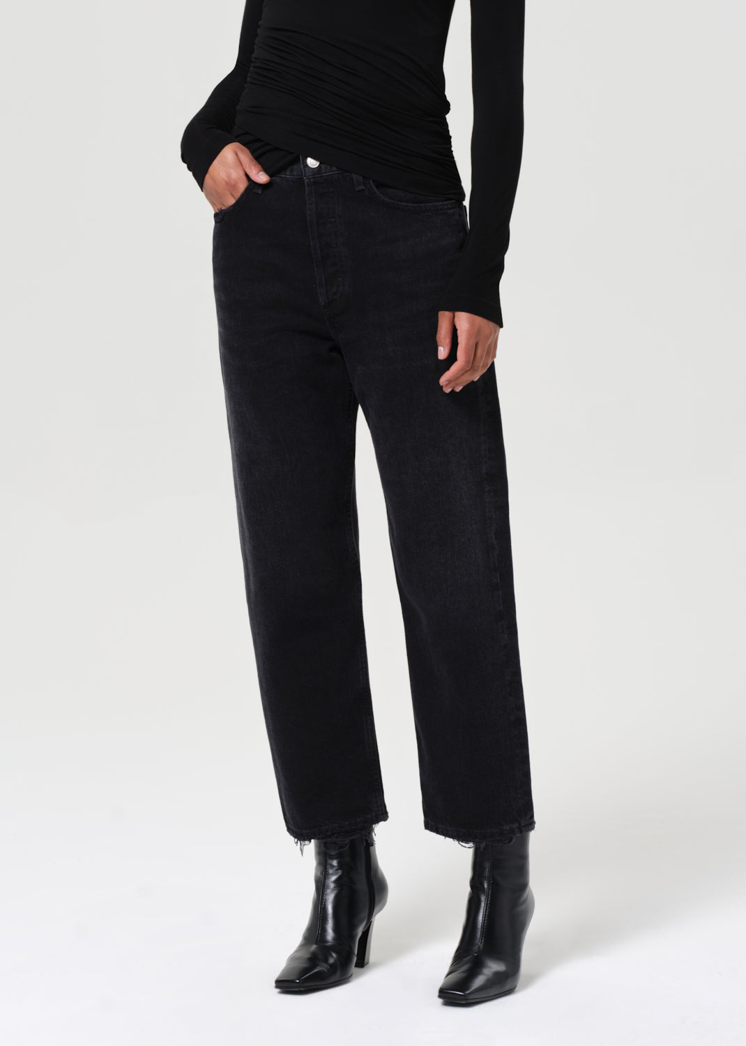 Our best-selling 90’s Jean is updated with a cropped inseam, combining vintage-inspired style with a modern twist. The mid-rise fit sits relaxed at the waist, transitioning into a loose, straight leg for a laid-back, effortless silhouette. Made from regenerative cotton in a clean black wash, these jeans offer a timeless, breathable feel with just the right amount of structure. Pair them with a relaxed tee and simple slides for a neutral, casual look, or style with a lightweight knit and minimal sneakers for a clean, understated vibe.