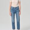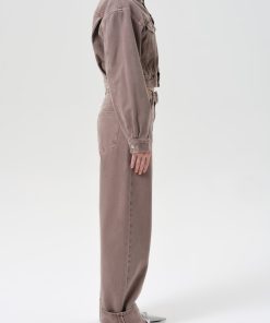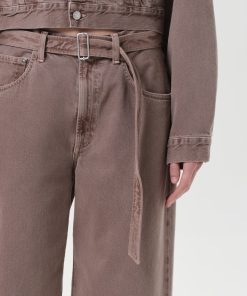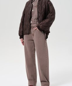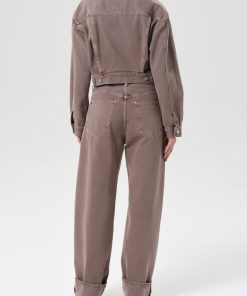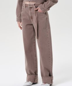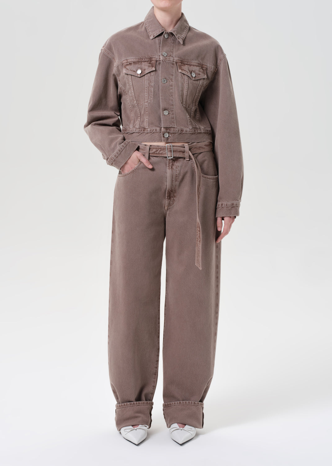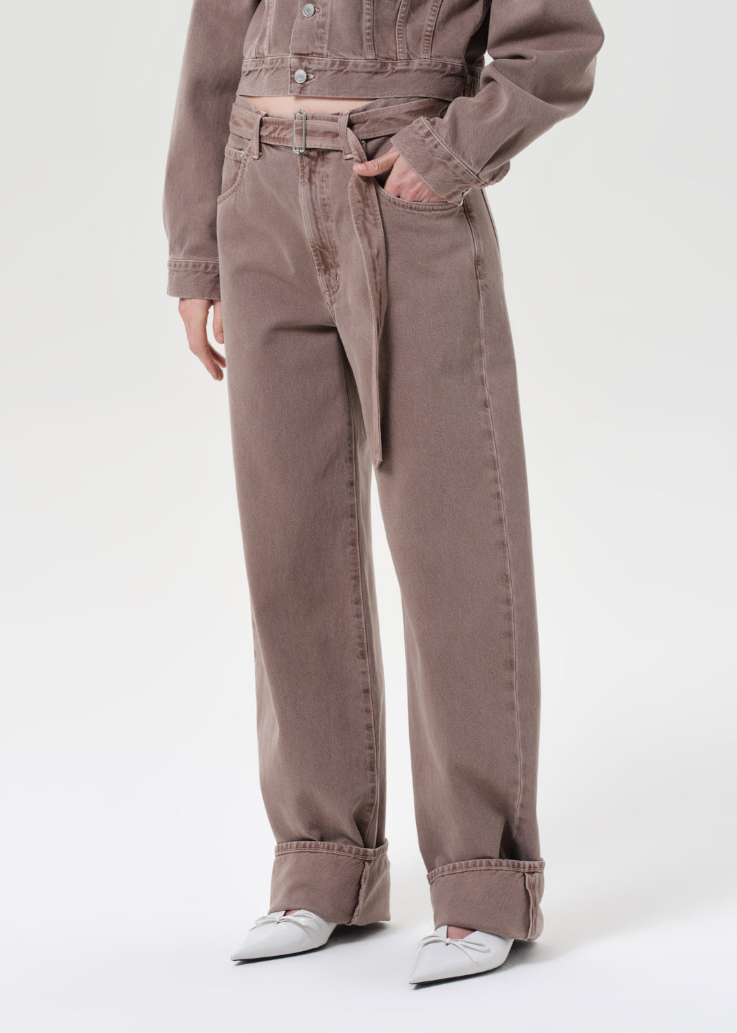 Looks Like: Dark rose-toned denim pant with optional cuff