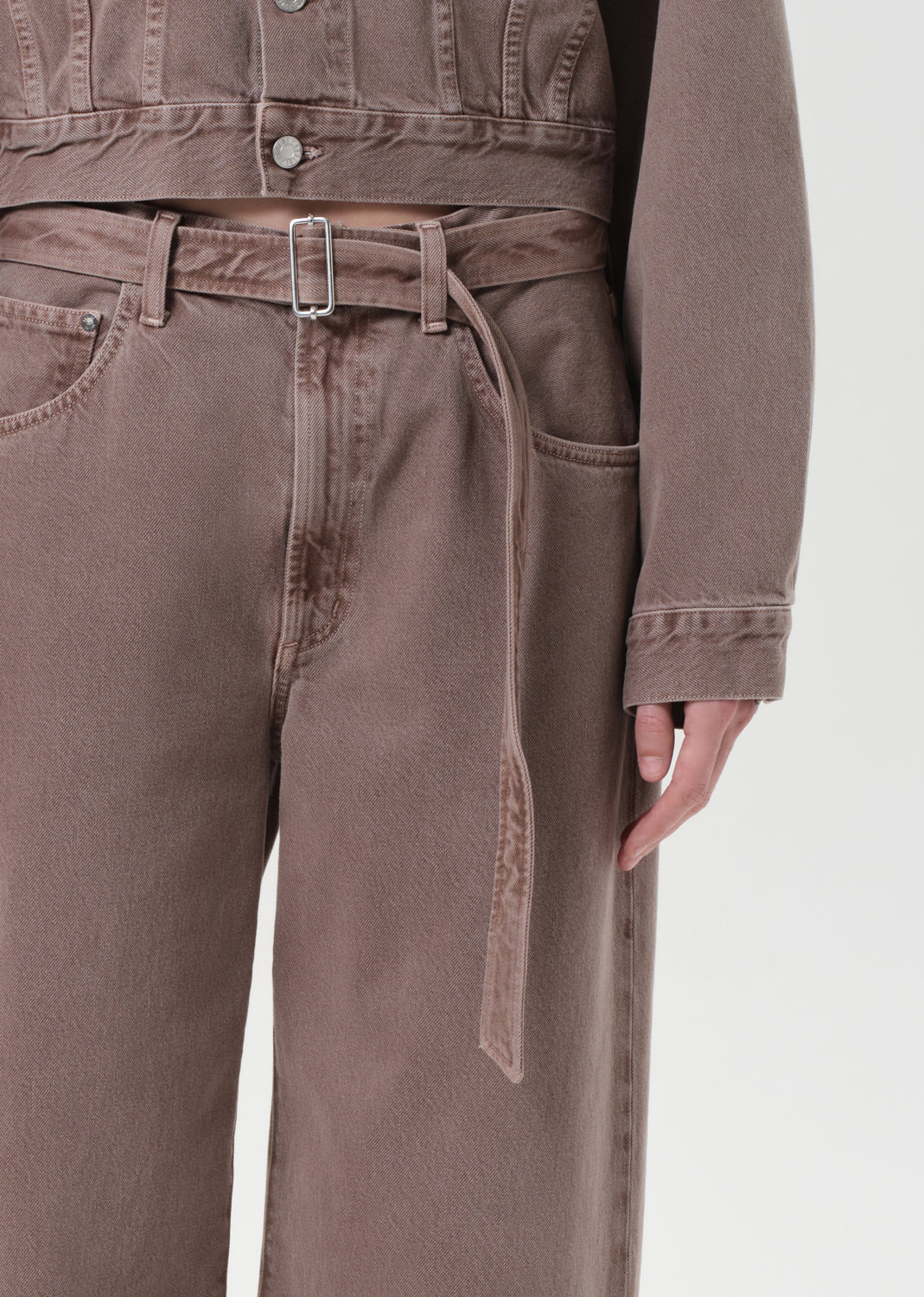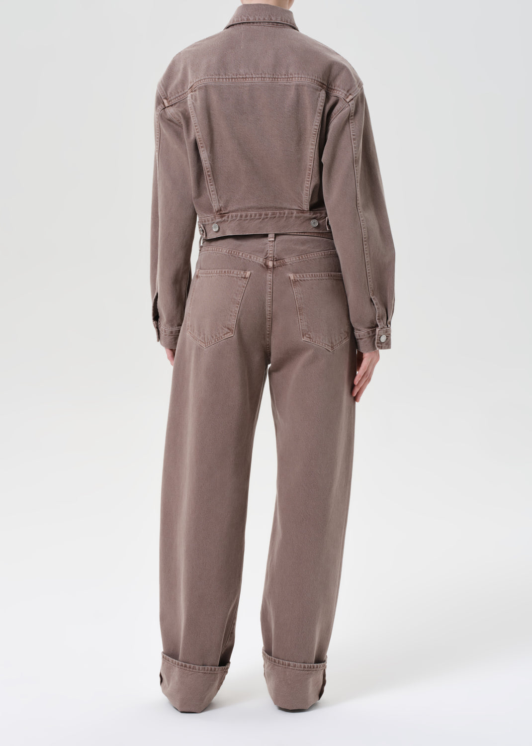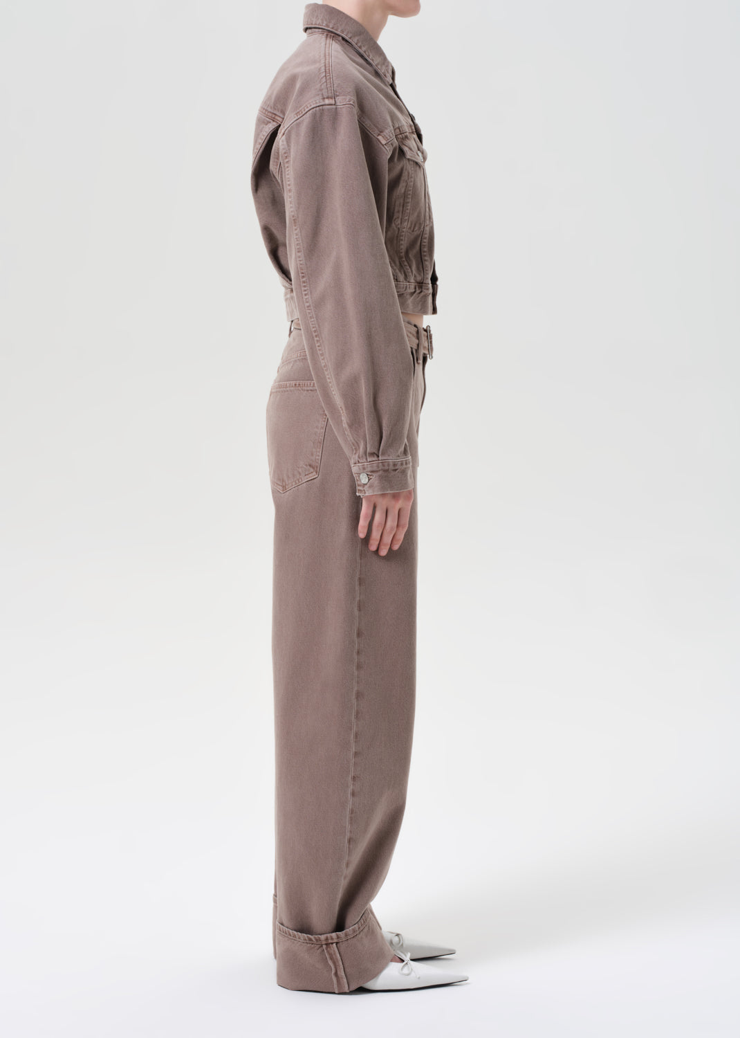 The Cuffed Taper is a relaxed, mid-rise silhouette with volume through the leg that tapers slightly at the ankle. Crafted from rigid, non-stretch regenerative cotton denim with a soft hand, this deep rose-toned wash features subtle marbling and an optional cuff for added shape and styling versatility. Pair with tonal layers or crisp shirting for a modern, balanced look.