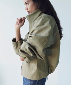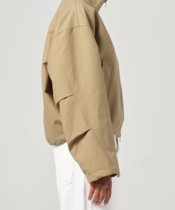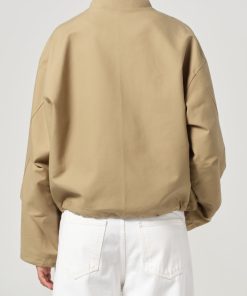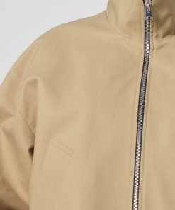 Looks Like: Medium beige zip up jacket with olive undertones and a drawcord bottom