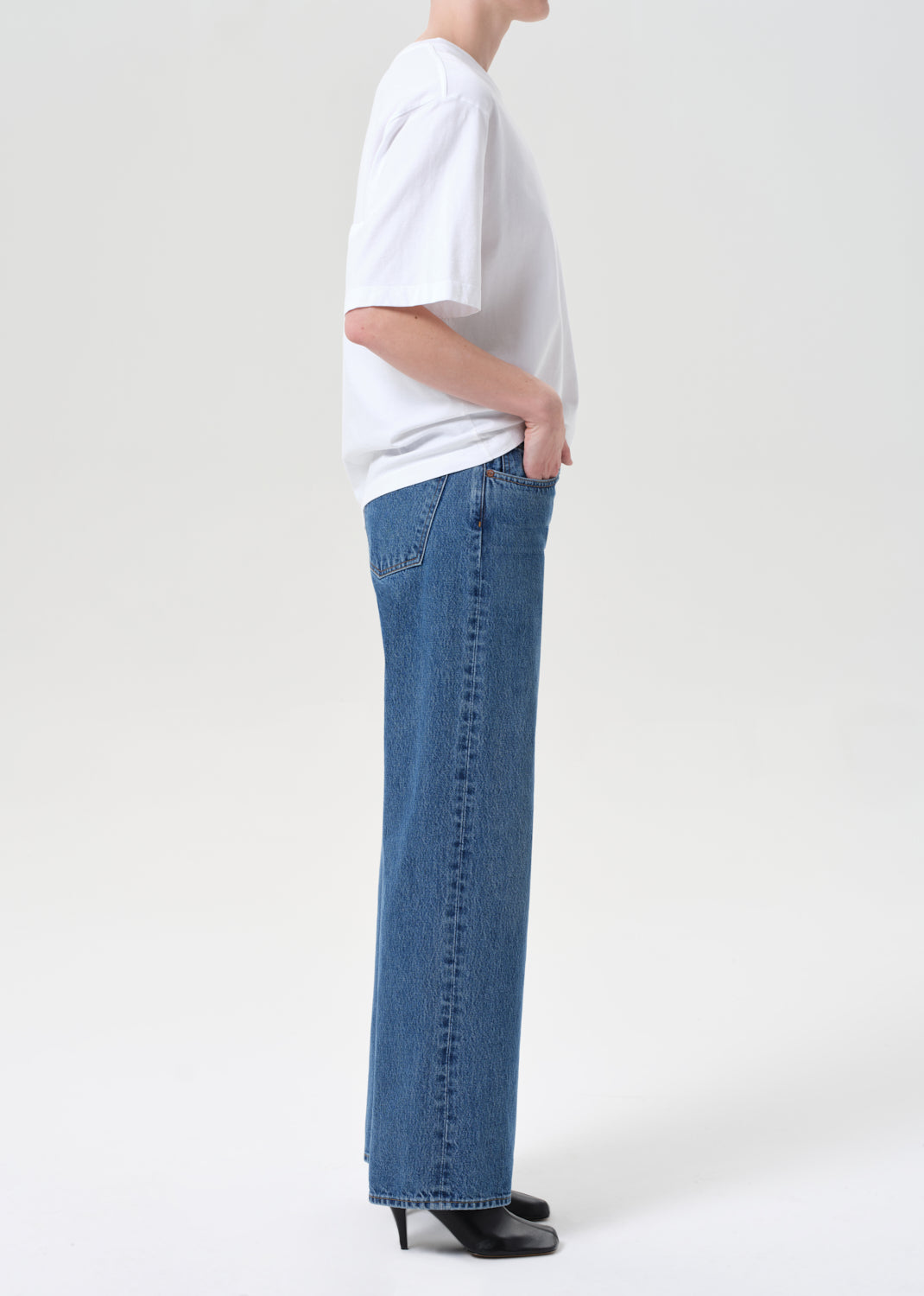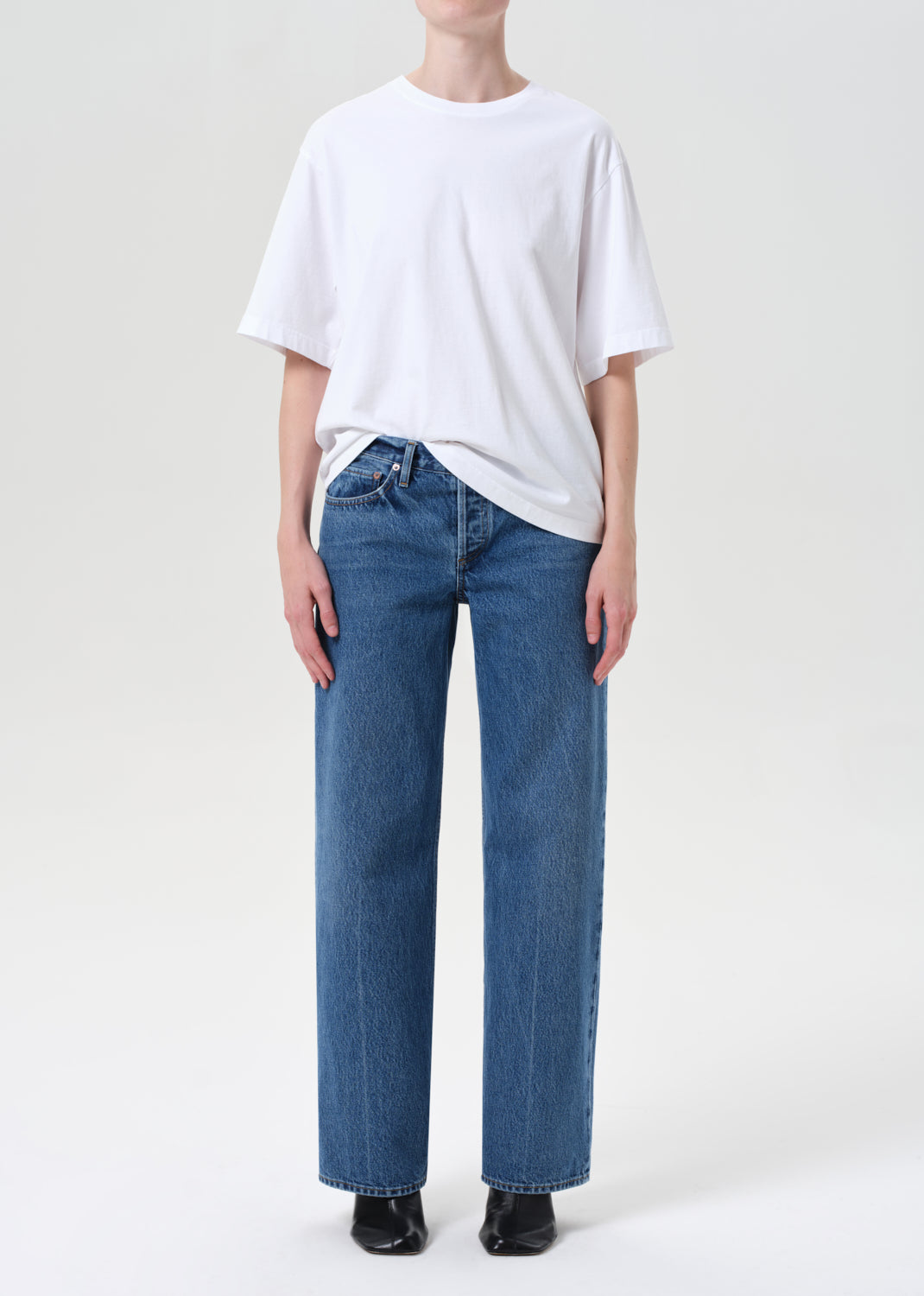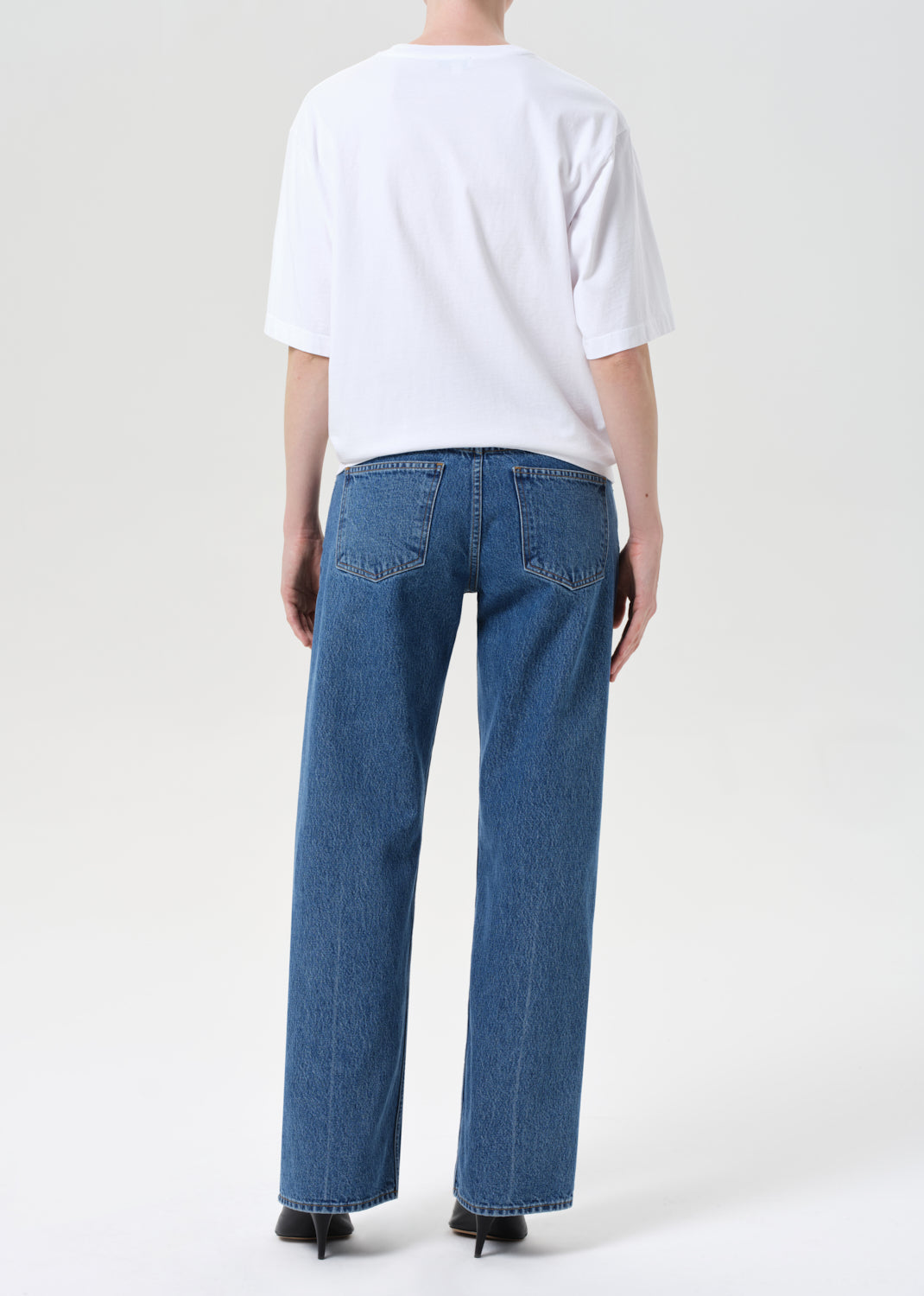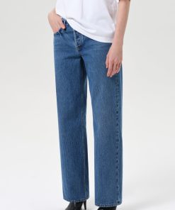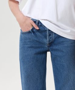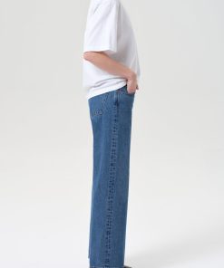 The Low Rise Loose is designed with a relaxed, full-length leg and low-slung fit for a laid-back yet refined silhouette. Crafted from rigid, non-stretch regenerative cotton, this bright medium indigo wash is finished with allover marbling for a dimensional, vintage-inspired look. Style with a classic tee or lightweight knit.