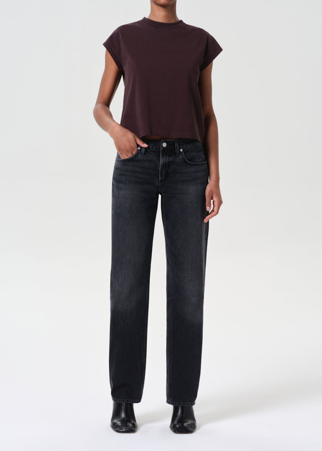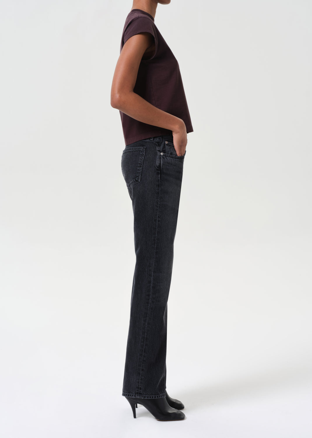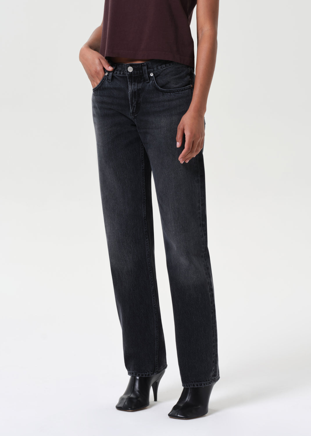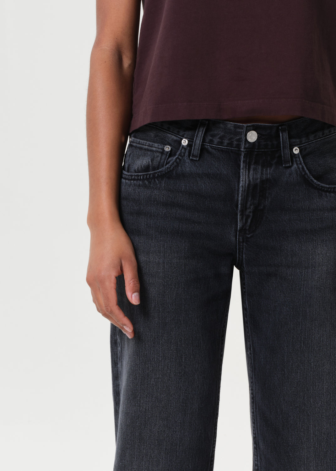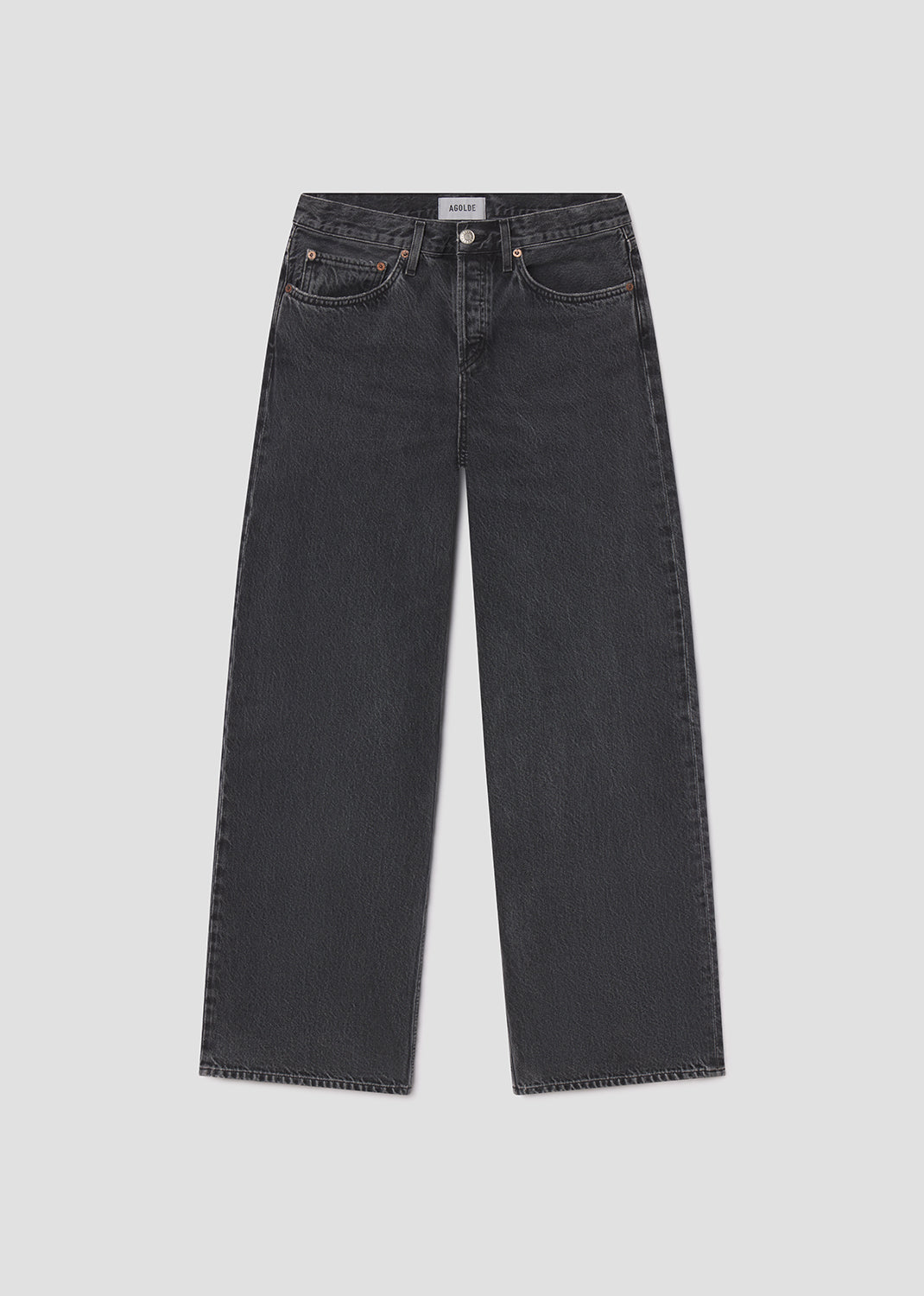 The Low Rise Loose is a laid-back, low-slung silhouette with a full-length leg and easy, baggy fit. Cut in a weightless, non-stretch denim, this washed black finish is softened for all-day comfort and detailed with subtle marbling and whiskering. Style with a fitted tank or oversized sweatshirt.