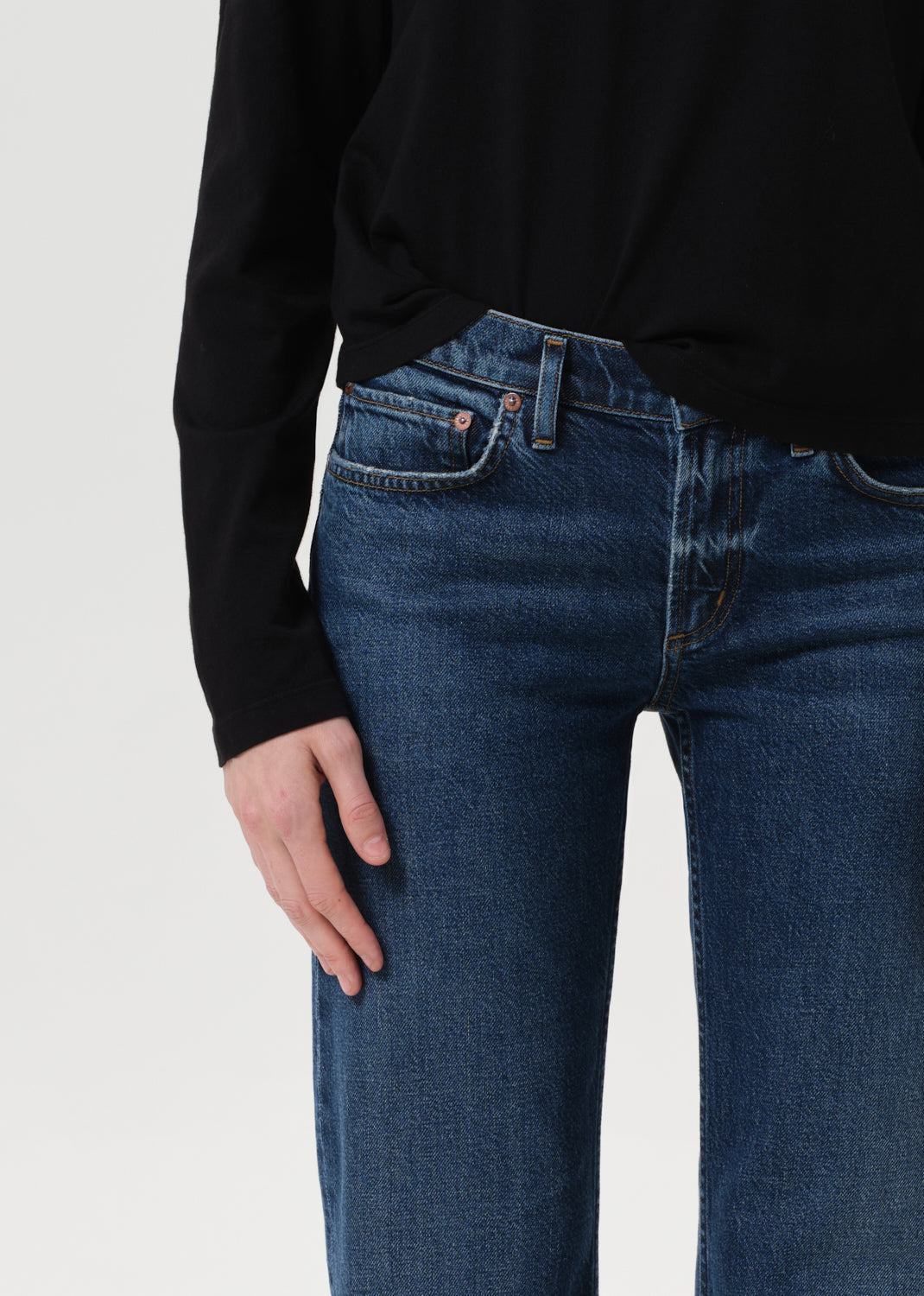 With a close-cut silhouette and a low-slung fit, the Low Rise Slim in Slick offers a modern take on early 2000s denim. The medium washed indigo is subtly marbled for added texture, crafted in soft comfort stretch denim. Style with everything from oversized knits to cropped tanks.